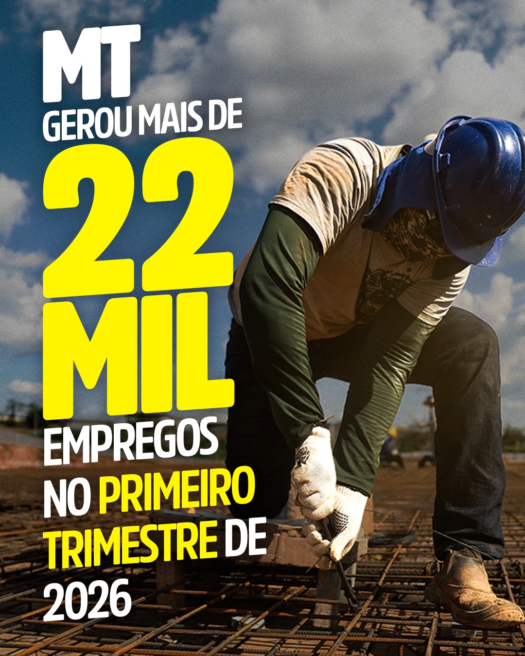 Só no primeiro trimestre de 2026, o GovMT ajudou a consolidar 22.106 novos empregos com carteira assinada. O resultado mostra que o Estado criou o ambiente ideal para gerar oportunidades, com estabilidade e crescimento real.