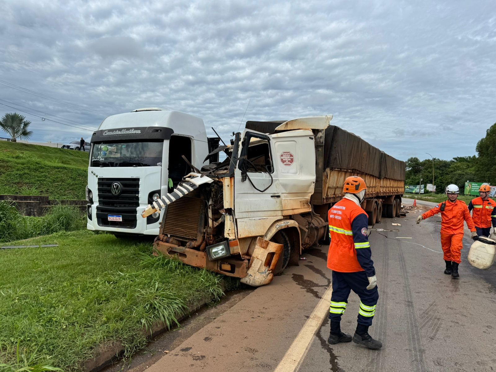 Acidente entre 3 caminhões deixa um morto e um ferido na BR-163 em MT