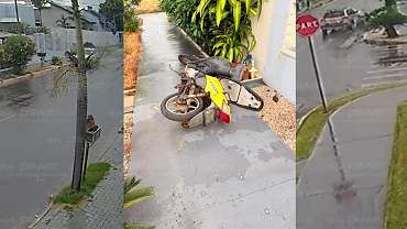 Dias antes, na última quinta-feira (02), outro acidente foi registrado no bairro Jardim Europa, na Rua das Catuabas. Imagens obtidas pela equipe do site Power Mix mostram o momento em que uma motocicleta Biz amarela, estacionada em frente a uma residência, é violentamente arremessada após ser atingida por um veículo Palio Weekend Adventure.