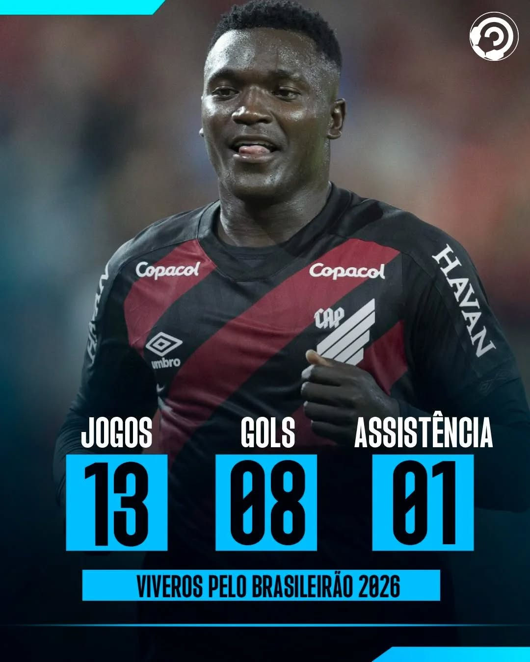 Kevin Viveros marcou dois contra o Vitória, chegou a 9 participações em gols em 13 jogos no Brasileirão 2026 e vive grande fase no Athletico.