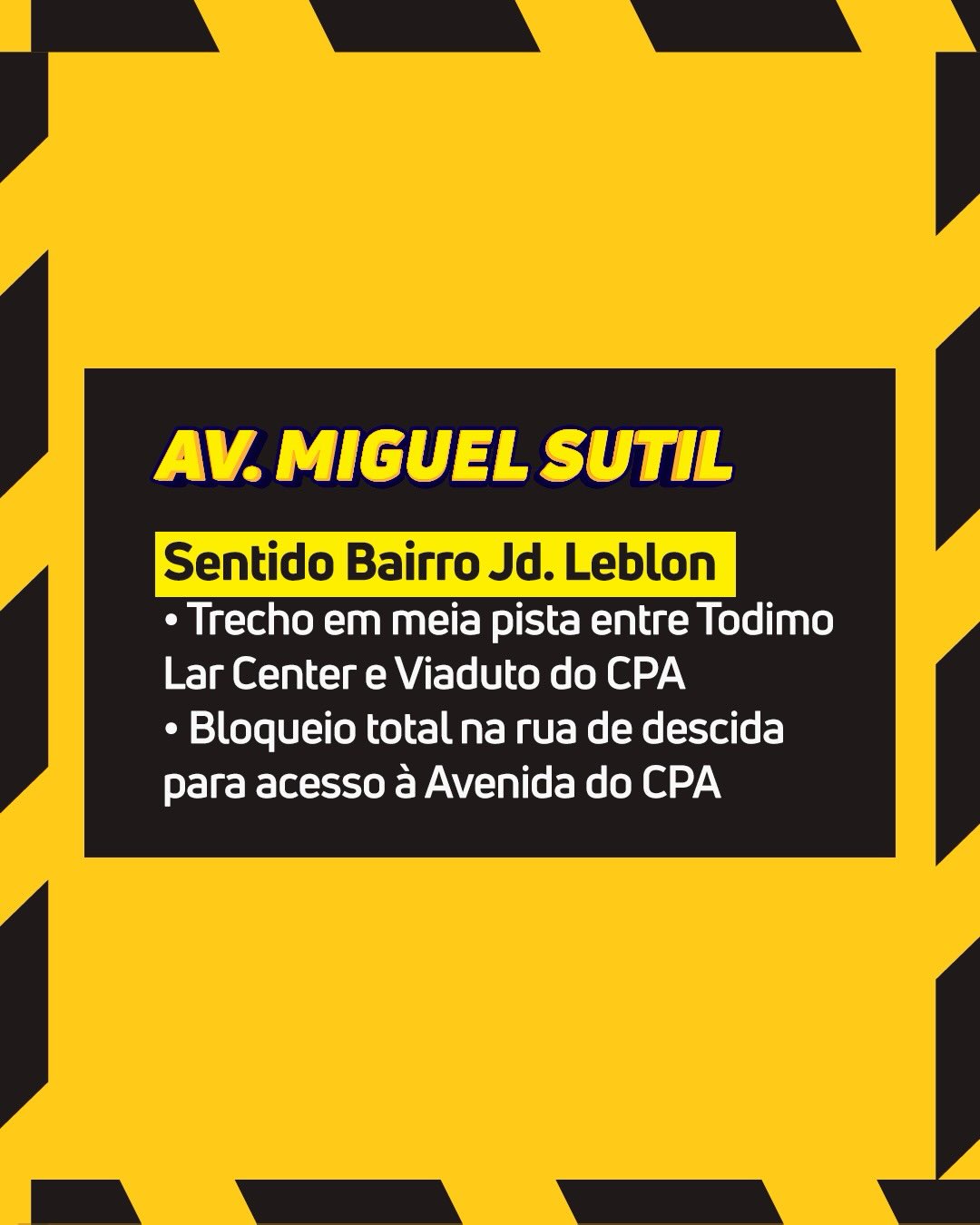 ATENÇÃO, MOTORISTAS!As obras das Avenidas Miguel Sutil, do CPA e Prainha, em …