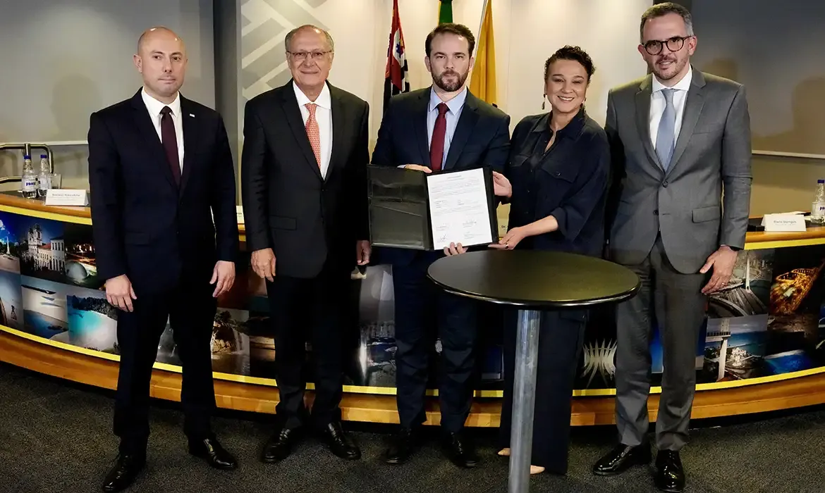 O evento de assinatura contou com a presença do vice-presidente da República, Geraldo Alckmin, de representantes do Ministério da Fazenda, da presidência do Banco do Brasil e da Secretaria de Fazenda e Planejamento do Estado de São Paulo.
