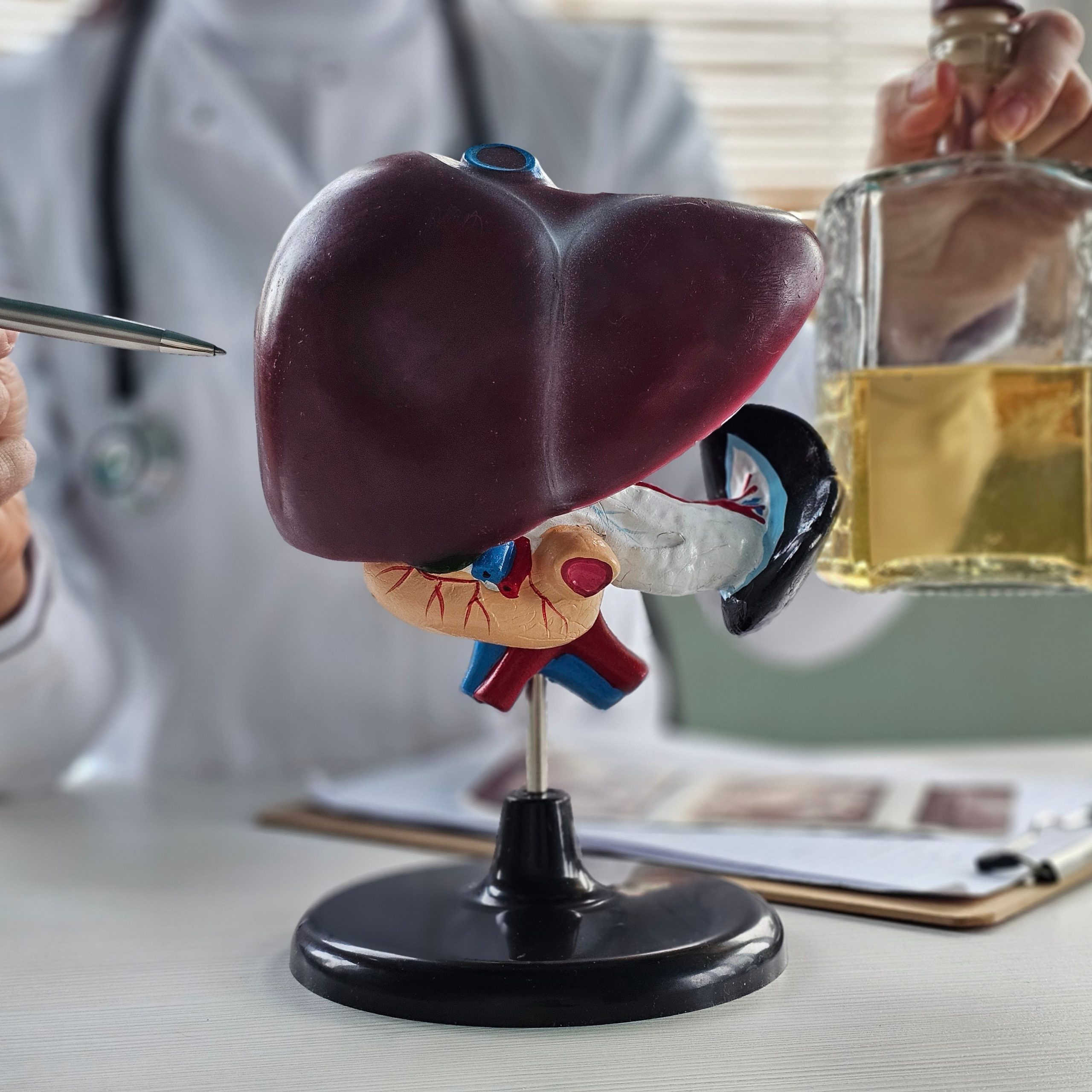 A cirrose hepática, marcada pela cicatrização progressiva do fígado, é frequentemente causada pelo consumo excessivo de álcool e pode levar a complicações graves, como acúmulo de líquido no abdômen (ascite), alterações neurológicas (encefalopatia) e sangramentos digestivos (hemorragia varicosa).