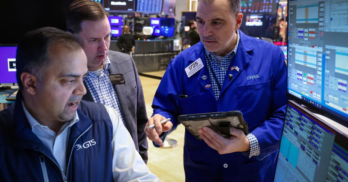Por volta das 12h, pelo horário de Brasília, o Dow Jones caía 0,34%, a 49.495 pontos. O S&P 500 perdia 0,14%, a 6.871 pontos, e o Nasdaq tinha baixa de 0,12%, a 22.726 pontos.