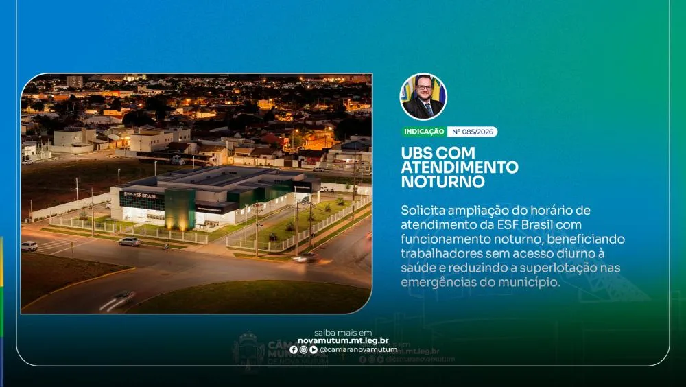 Chegar em casa após um dia longo de trabalho e ainda precisar de atendimento médico é uma realidade para muitos mutuenses — e encontrar a unidade de saúde fechada torna essa situação ainda mais difícil. Para enfrentar esse problema, a Câmara Municipal de Nova Mutum aprovou por unanimidade, na 11ª sessão ordinária, realizada na quarta-feira, 22 de abril, a Indicação nº 085/2026, de autoria do vereador Rafael Brignoni (PL). A proposta sugere ao Poder Executivo a implantação de horário ampliado de atendimento, incluindo funcionamento no período noturno e/ou horários estendidos no Pronto Atendimento ESF Brasil.