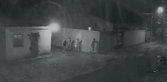 As gravações, feitas por câmeras instaladas em residências da região, mostram os suspeitos caminhando em grupo pelas vias do distrito. Veja as cenas abaixo: