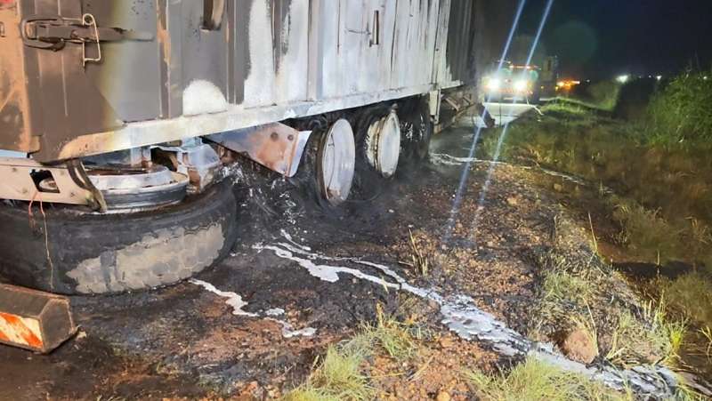 De acordo com as informações, o veículo, um caminhão modelo Scania R 500, transportava anteriormente carga de cavaco. O incêndio teria começado na parte do sistema de freios, se espalhando rapidamente pela carreta.