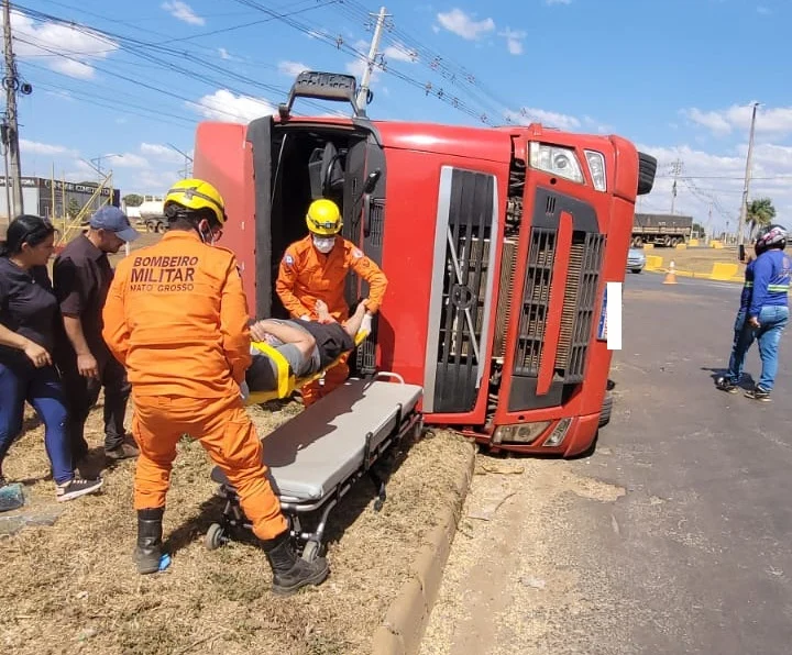 Segundo informações do Corpo de Bombeiros, o motorista do veículo ficou preso dentro da cabine após o tombamento e apresentava escoriações nos membros superiores e inferiores. Ele recebeu atendimento da guarnição e foi encaminhado para avaliação médica.