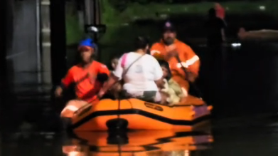 Equipes da Defesa Civil realizaram resgates de moradores na noite desta quinta-feira (12) após fortes chuvas causarem alagamentos em bairros de Peruíbe, no litoral sul de São Paulo. Vídeos mostram agentes usando bote para retirar famílias de áreas inundadas.