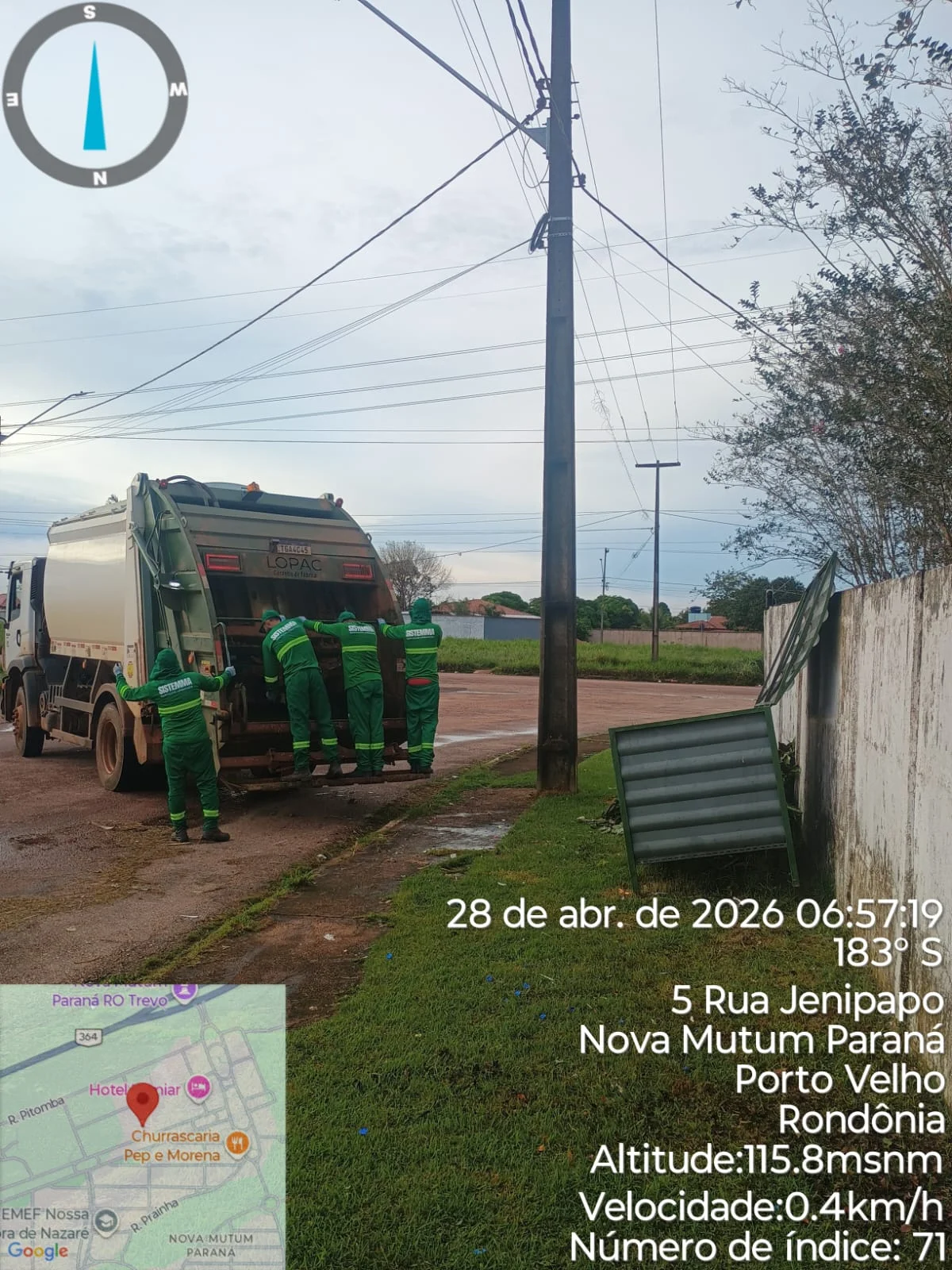 Porto Velho, RO – O serviço de coleta de resíduos sólidos já está em execução no distrito de Nova Mutum Paraná, em Porto Velho, sob responsabilidade da empresa Sistemma, que assumiu recentemente a operação da limpeza urbana no município.
