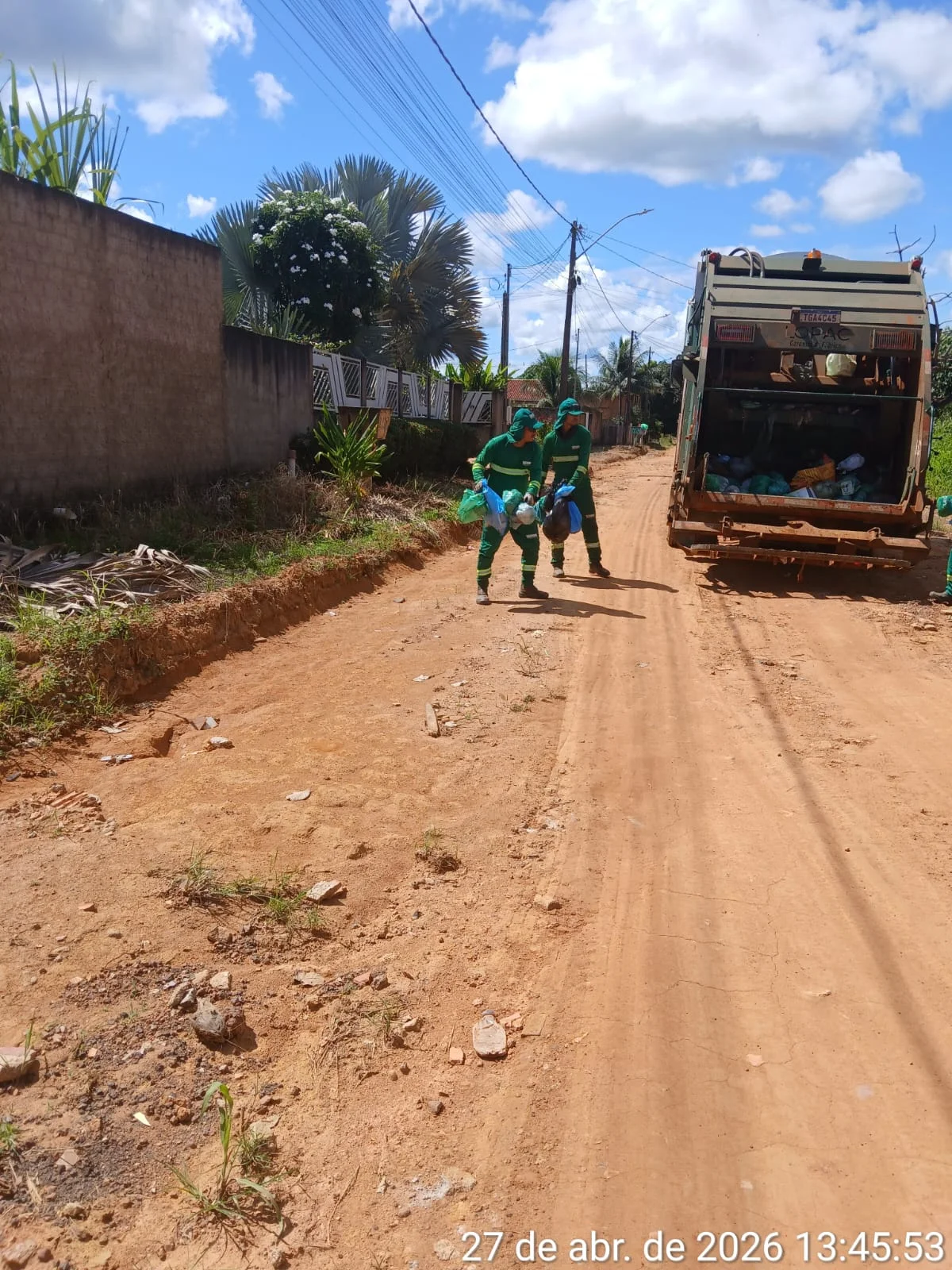 Registros feitos na manhã desta terça-feira (28) mostram equipes atuando diretamente nas ruas do distrito, realizando a coleta manual e o recolhimento por caminhão compactador. A operação ocorre com trabalhadores uniformizados e organização por setores, seguindo o planejamento logístico definido pela empresa.