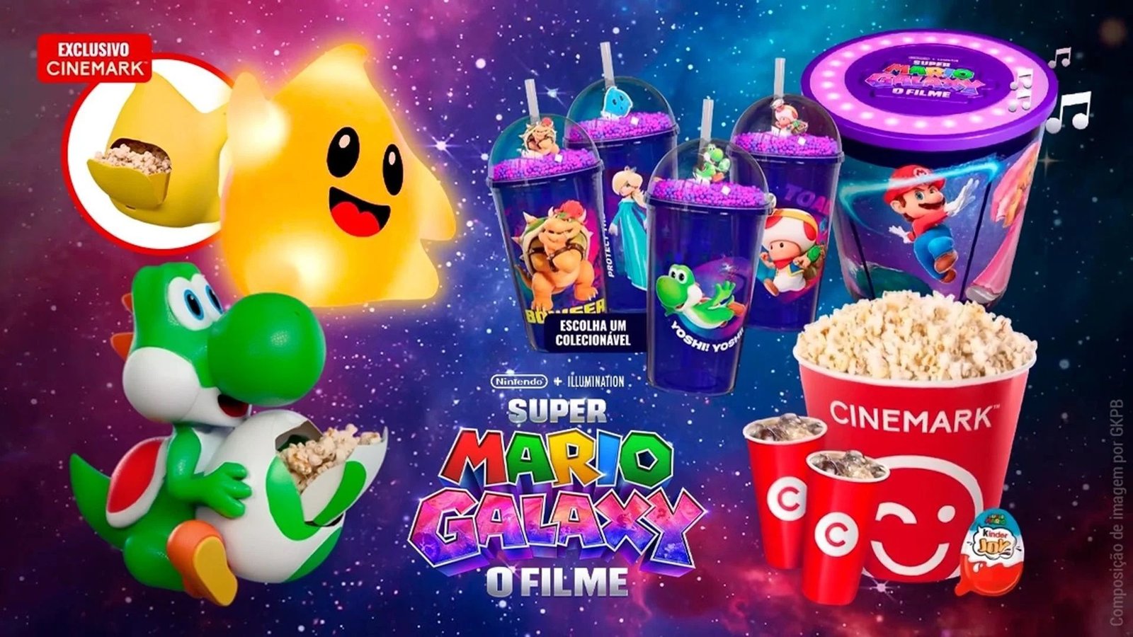 A rede de cinemas Cinemark começou a vender combos temáticos inspirados em Super Mario Galaxy: O Filme que chamaram a atenção pelos preços. As opções premium da promoção ultrapassam os R$ 300 e incluem itens colecionáveis inspirados em personagens do universo da franquia.