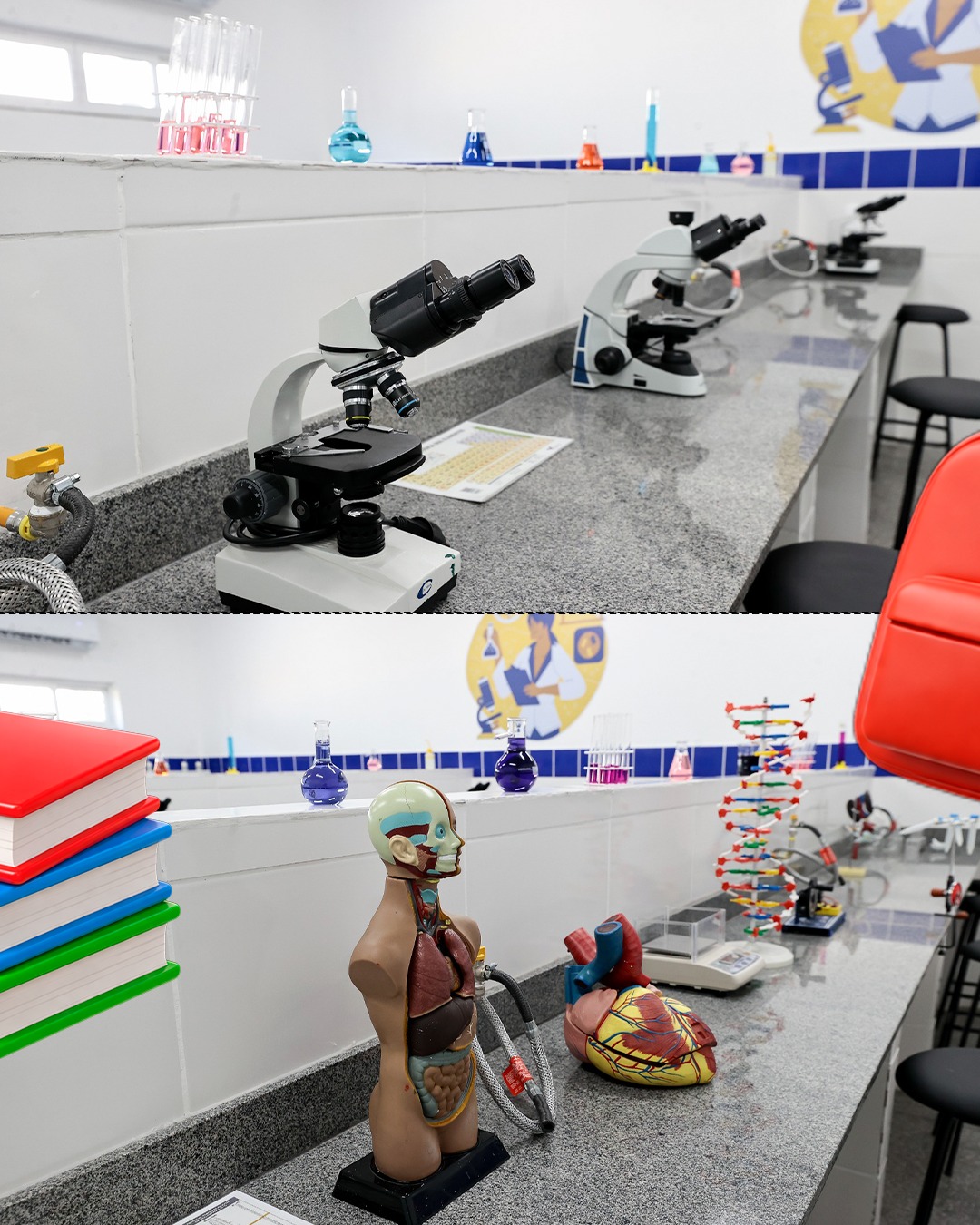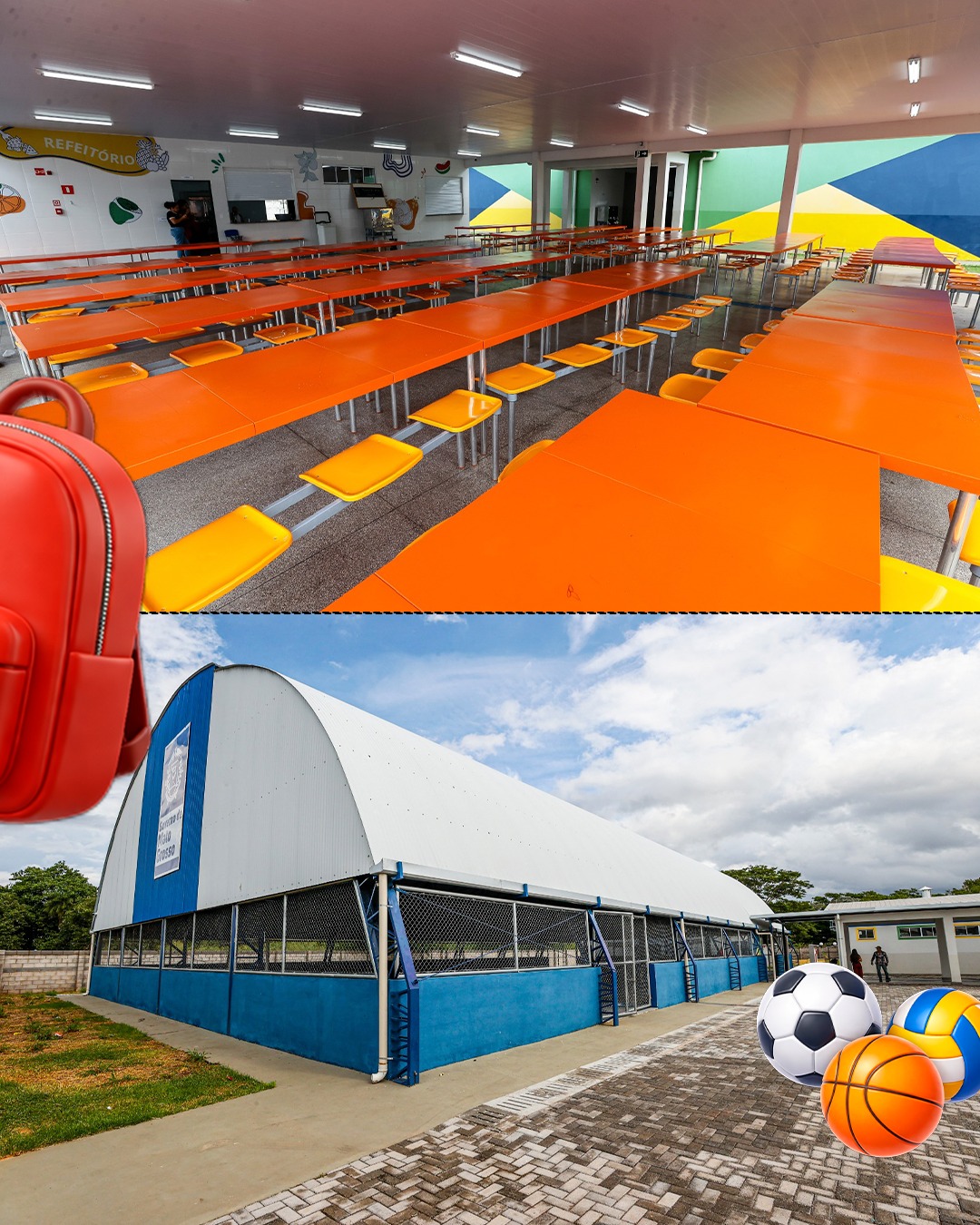 👉🏼 Estrutura completa com quadra poliesportiva coberta, biblioteca equipada e laboratórios tecnológicos.