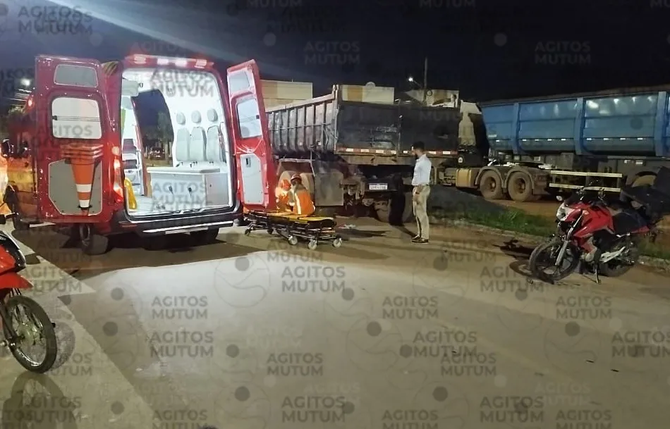 Um motociclista ficou ferido ao colidir na traseira de um caminhão caçamba que estava estacionado na noite desta terça-feira (24), na Rua das Açucenas, no bairro Primavera II, em Nova Mutum/MT.