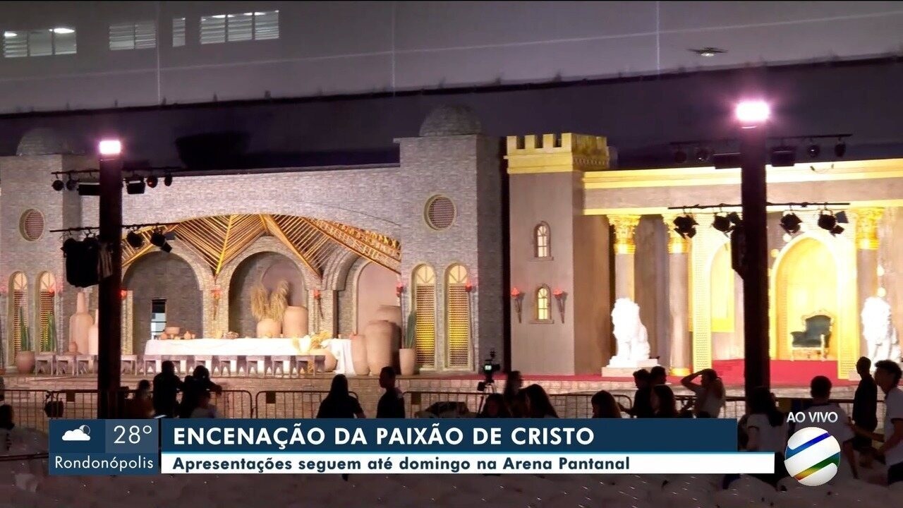As apresentações do espetáculo da Paixão de Cristo começam nesta segunda-feira (30), às 18h, na Arena Pantanal, em Cuiabá. O evento, que tem entrada gratuita, será realizado ao longo de vários dias.