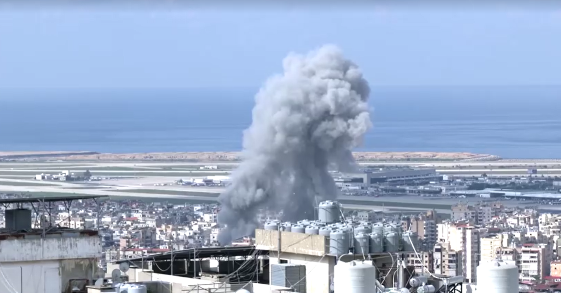 Uma coluna de fumaça foi vista na manhã desta quarta-feira (4) nos subúrbios ao sul de Beirute, perto do principal aeroporto do Líbano, mostram imagens da agência de notícias Reuters.