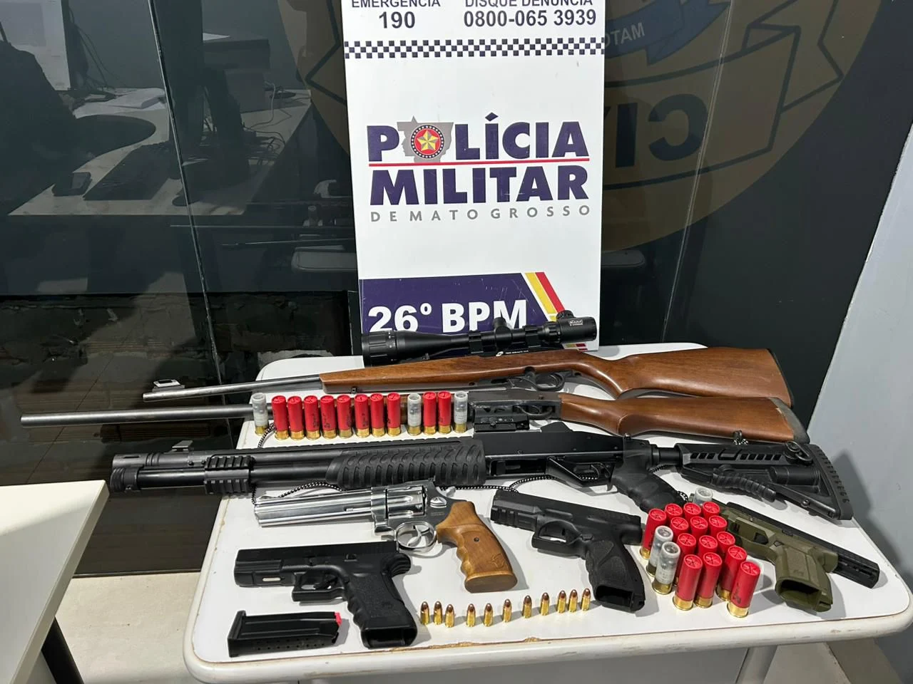 Homem é preso após agredir esposa grávida e manter arsenal de armas em casa em Nova Mutum