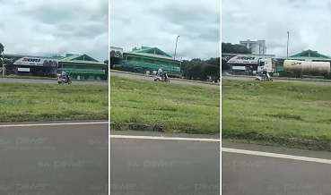 O vídeo foi encaminhado à redação do site Power Mix por um internauta. As imagens mostram o homem trafegando nas proximidades da pista da rodovia federal, conhecida pelo intenso fluxo de caminhões e veículos de passeio, o que aumenta significativamente o risco de acidentes.