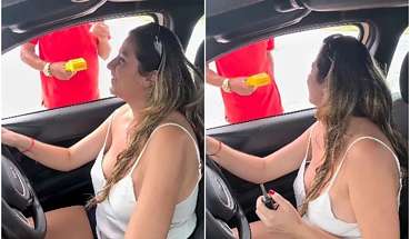 O também influenciador Vagner Macedo, que acompanhava Bella no local, relatou que, após o fim da gravação, a mulher retornou e jogou água dentro do carro.