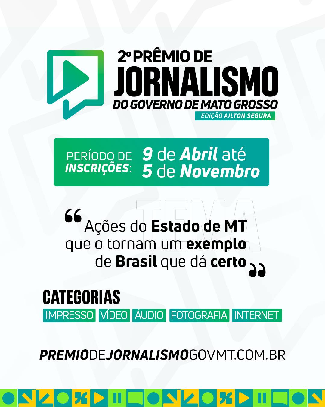 INSCRIÇÕES ABERTAS PARA O PRÊMIO DE JORNALISMO! O GovMT abriu as inscrições pa…