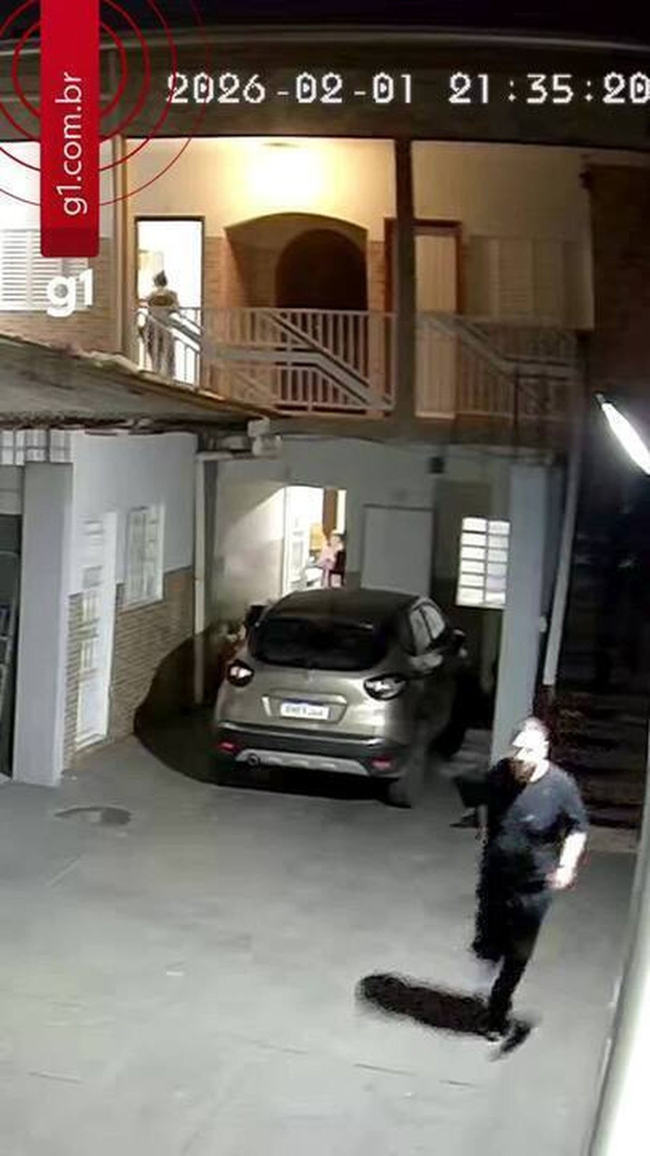 Imagens das câmeras de segurança mostram o momento em que os três suspeitos entram na casa no dia do crime. Pouco depois tiros são ouvidos e o grupo vai embora (assista acima).