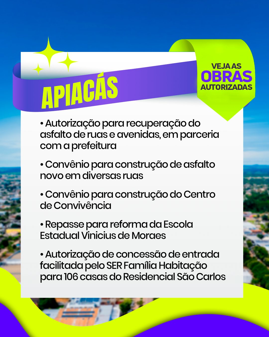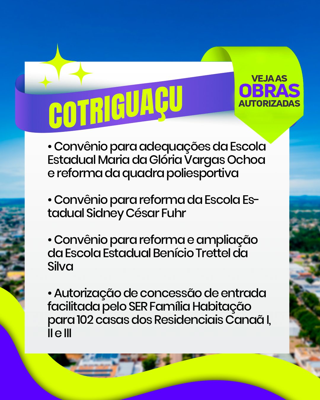 👉🏼 Construção de novas escolas estaduais em Alta Floresta, reformas em unidades de Cotriguaçu e Apiacás, além da concessão de entrada facilitada para mais de 900 moradias pelo programa SER Família Habitação.