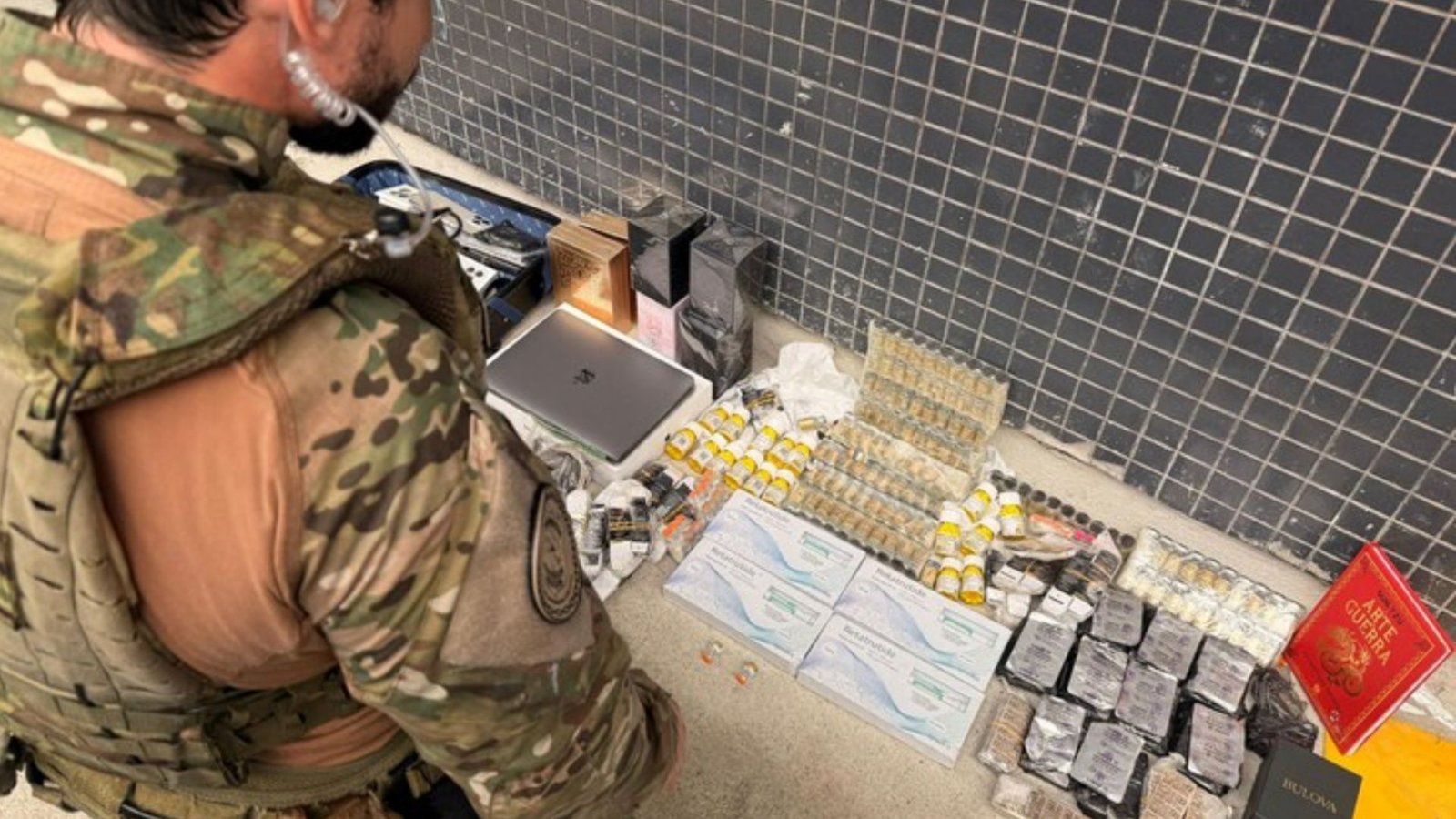 - Medicamentos vendidos como emagrecedores, incluindo canetas injetáveis para perda de peso, são outros produtos localizados pelos policiais na ação.