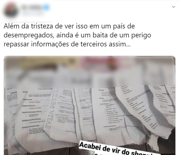 Outros internautas também comentaram sobre o embrulho de produtos com currículos de candidatos.