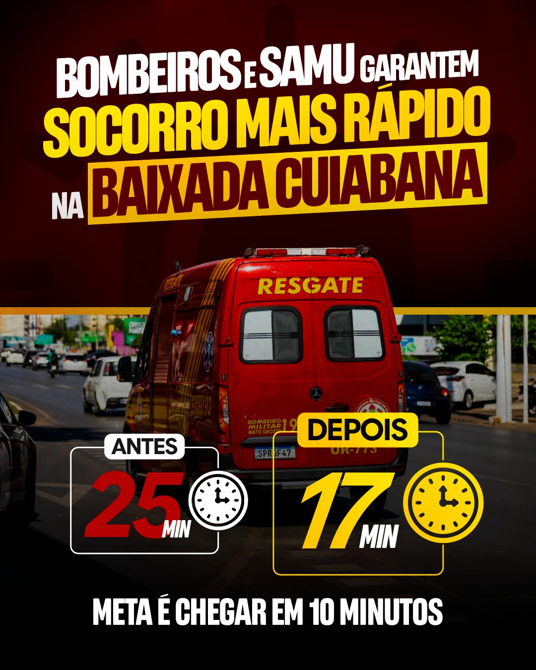 A parceria entre o Corpo de Bombeiros e o SAMU está fazendo a diferença na Baixada Cuiabana. Com uma integração estratégica, conseguimos reduzir o tempo médio de espera de 25 para apenas 17 minutos.