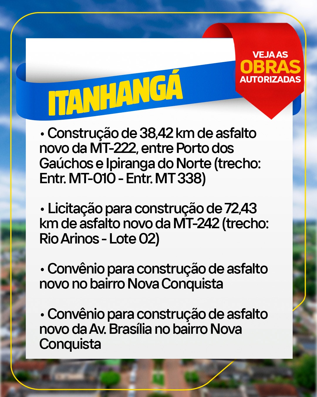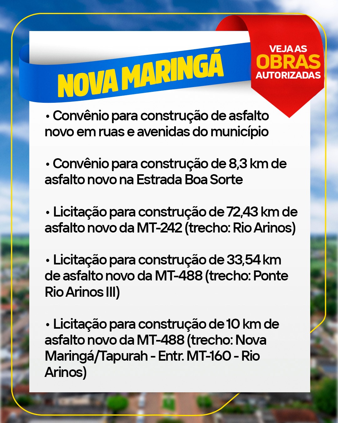 👉🏼 São mais de 300 km de asfalto novo e recuperado em rodovias como a MT-222, MT-242, MT-488 e MT-160, garantindo mais segurança para quem trafega na região.