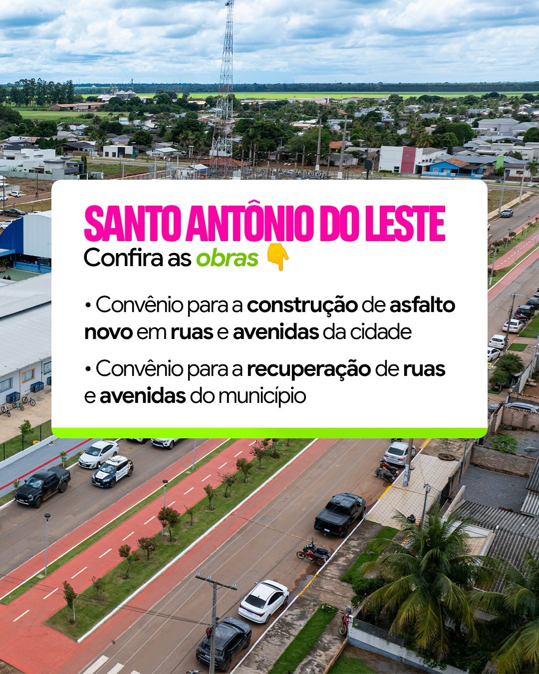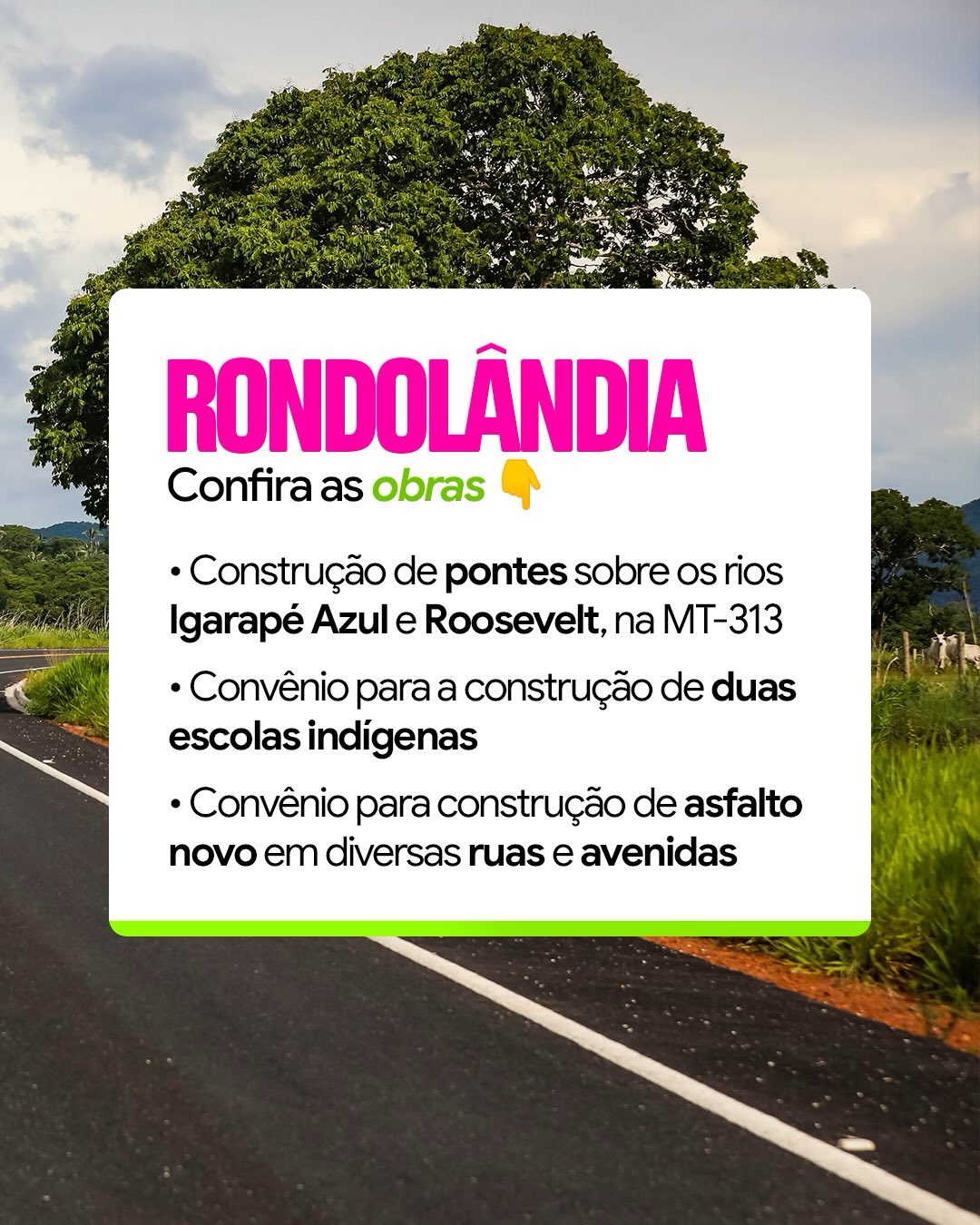 👉🏼 Obras de pavimentação e recuperação de vias em Santo Antônio do Leste e novas pontes e escolas indígenas em Rondolândia.