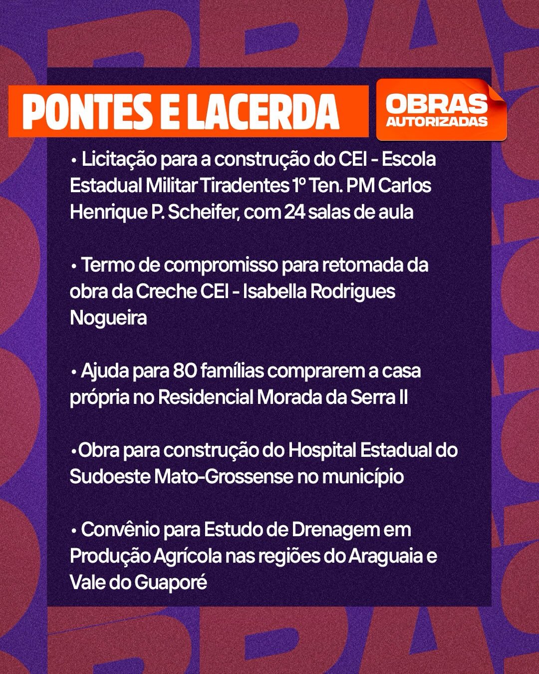 👉🏼 Construção do Hospital Estadual do Sudoeste Mato-Grossense e de novas unidades escolares.