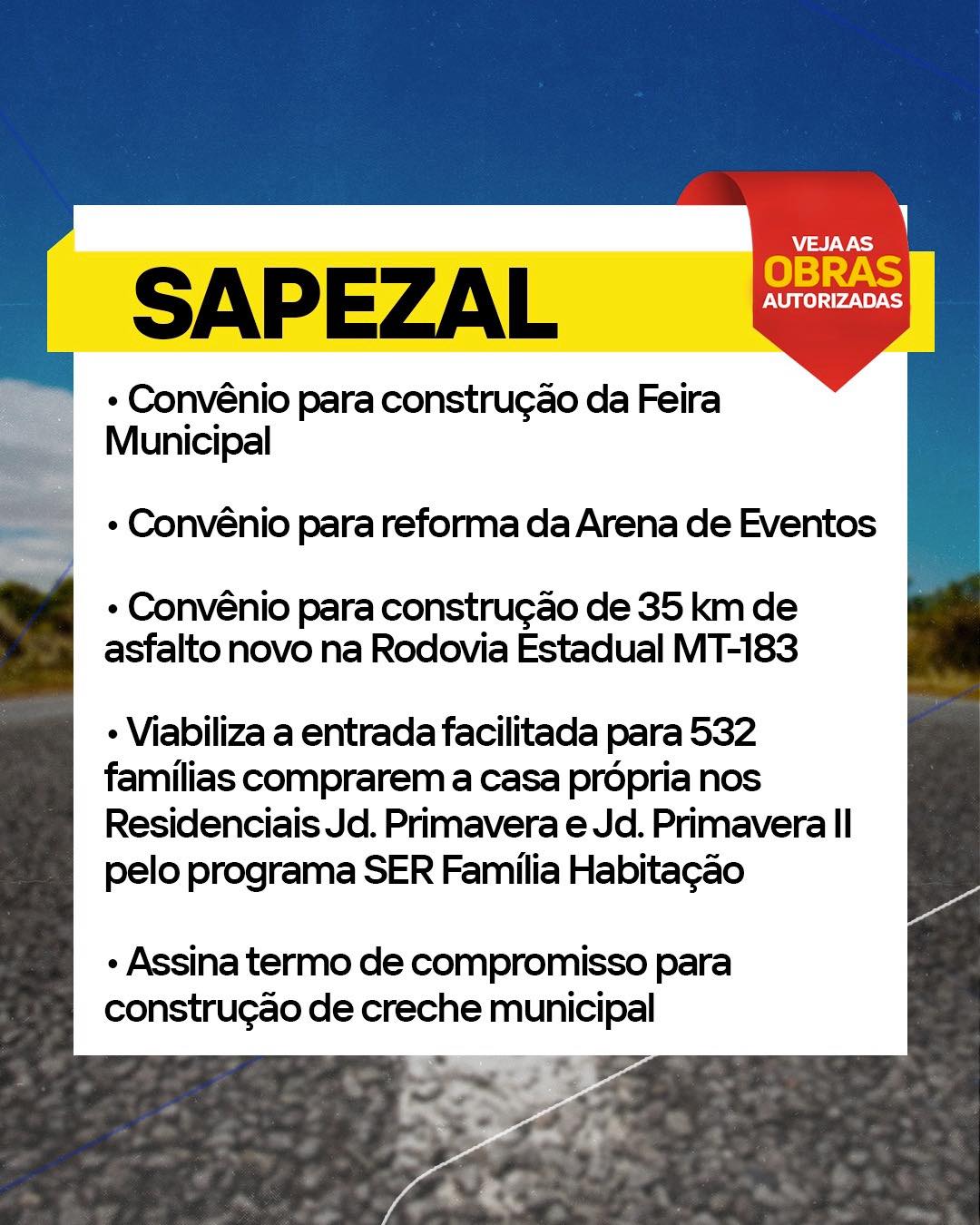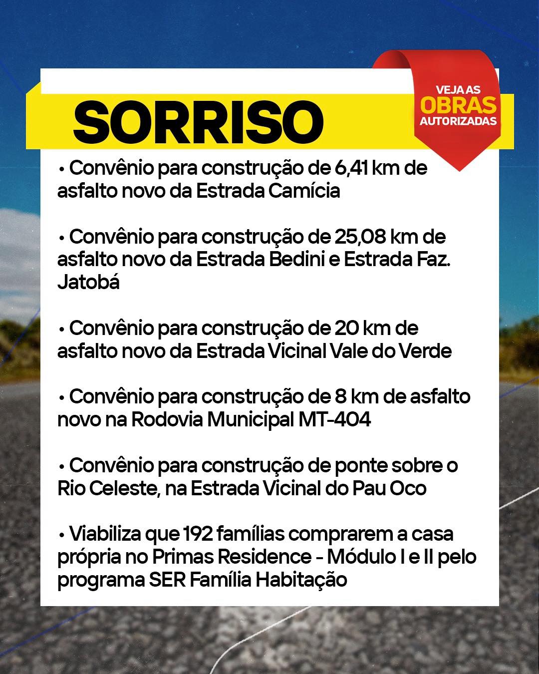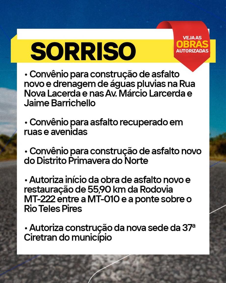 O GovMT autorizou investimentos para melhorar a infraestrutura no Médio-Norte, com novos asfaltos, creches, sedes administrativas e moradias para famílias de Sorriso, Nova Ubiratã, Sapezal e Feliz Natal.