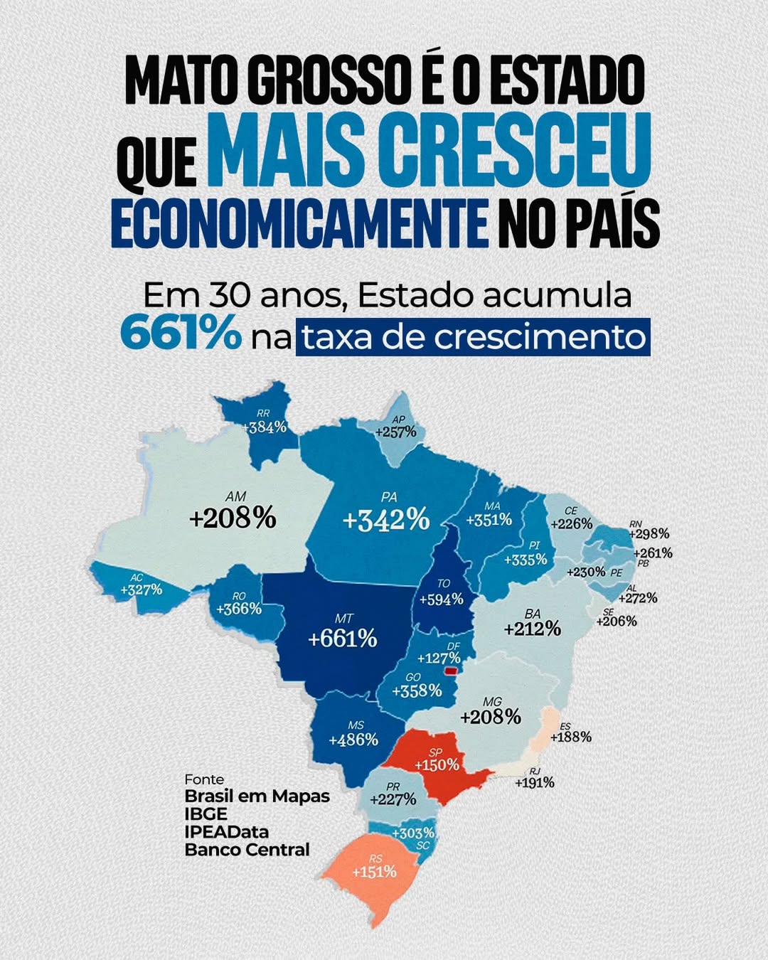 Mato Grosso é líder em crescimento no Brasil! Nos últimos 30 anos, Mato Grosso…