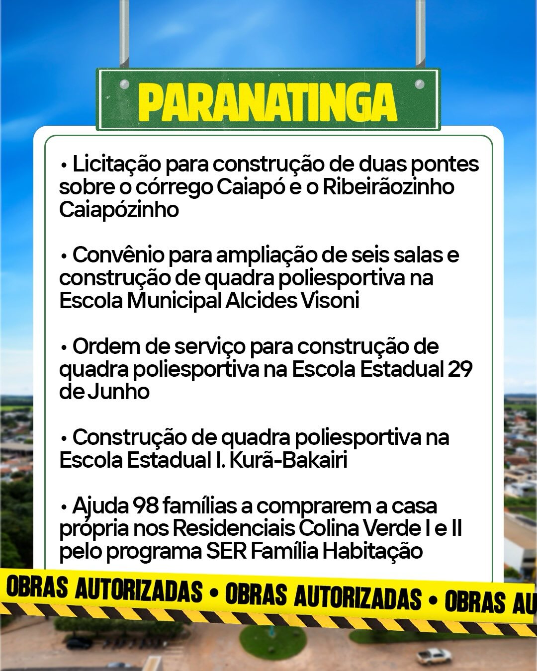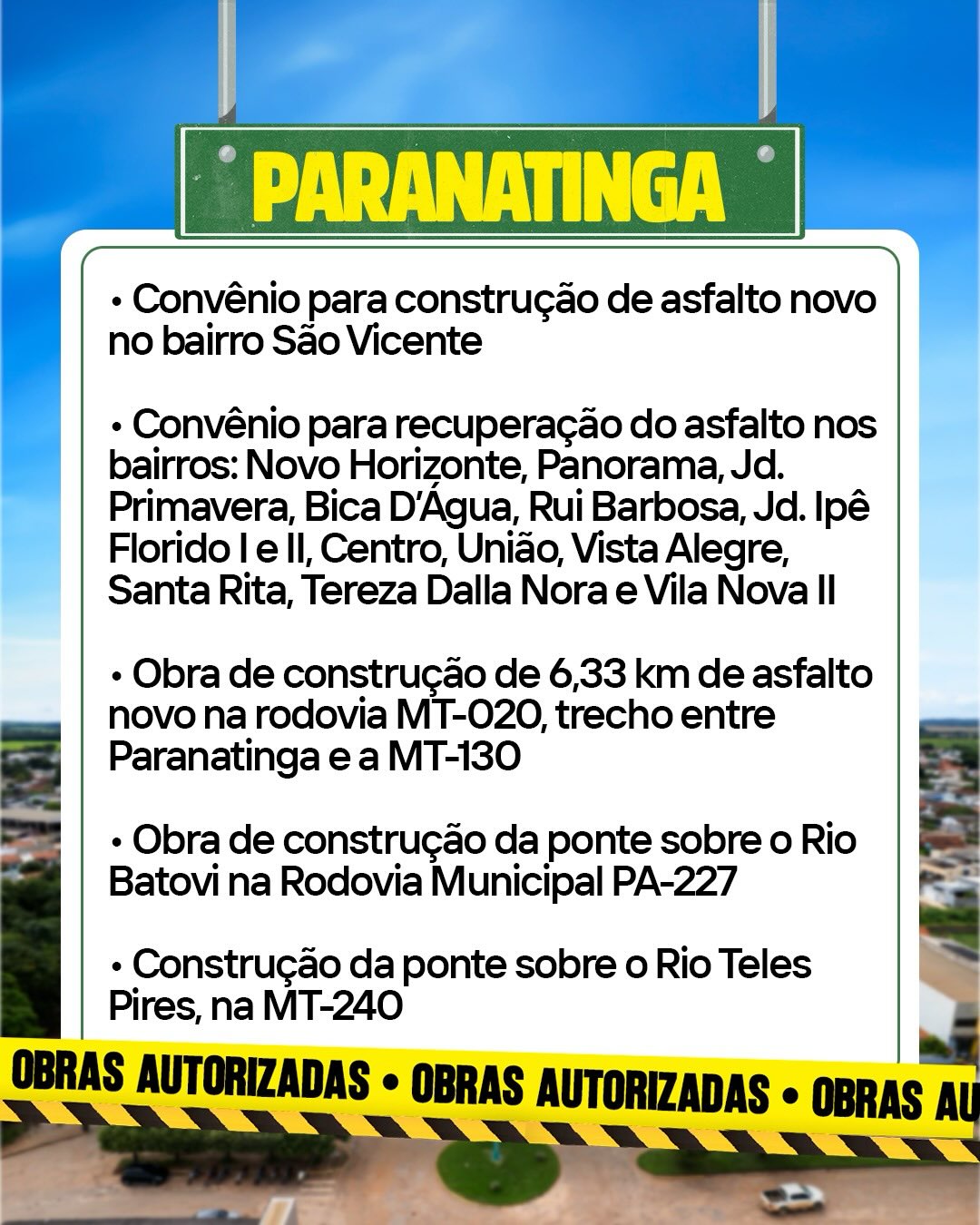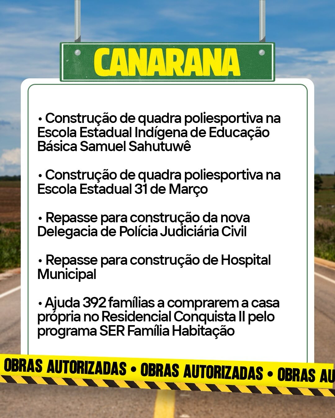 Tudo isso para levar mais desenvolvimento, oportunidades e qualidade de vida para a população.