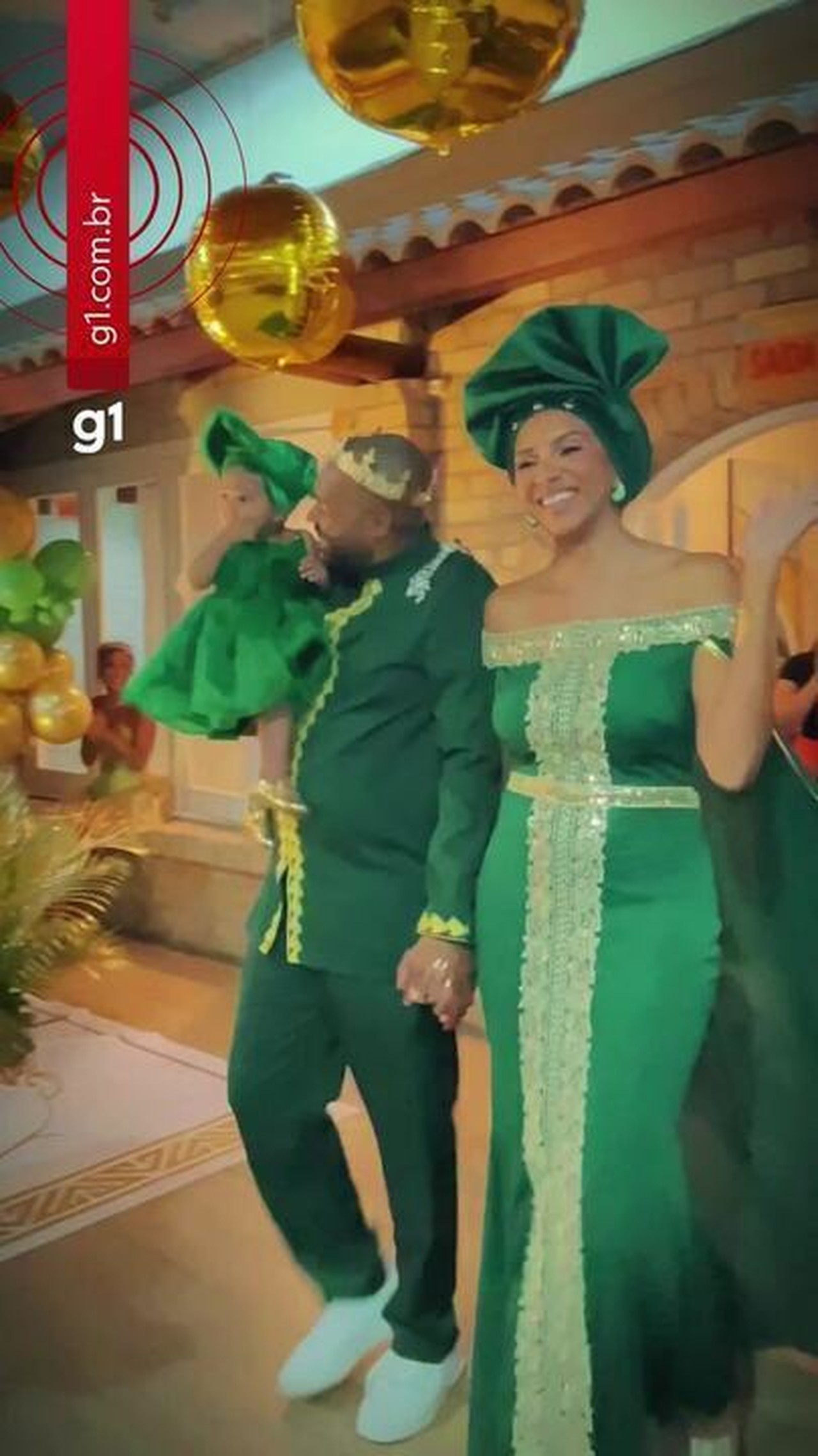 No vídeo da festa, realizada no sábado (7), é possível ver os convidados chegando um a um vestidos com trajes que fazem referência à cultura africana, com padrões vibrantes, geométricos e ricos em simbolismo. Também aparecem outros personagens, como princesas e casais históricos. Naomi e os pais entram por último, com a menina no colo (assista acima).