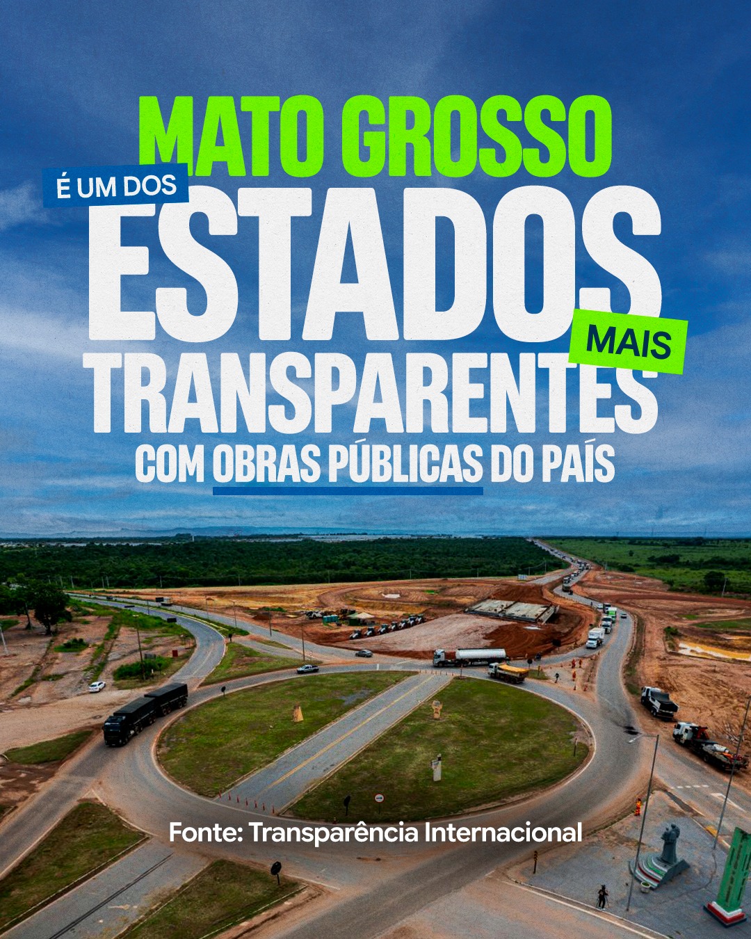 Mato Grosso alcançou o 3º lugar no Brasil em transparência de obras públicas, segundo a Transparência Internacional. Com nota 81,8, o Estado superou a média nacional, reafirmando o compromisso com a clareza na gestão dos recursos.