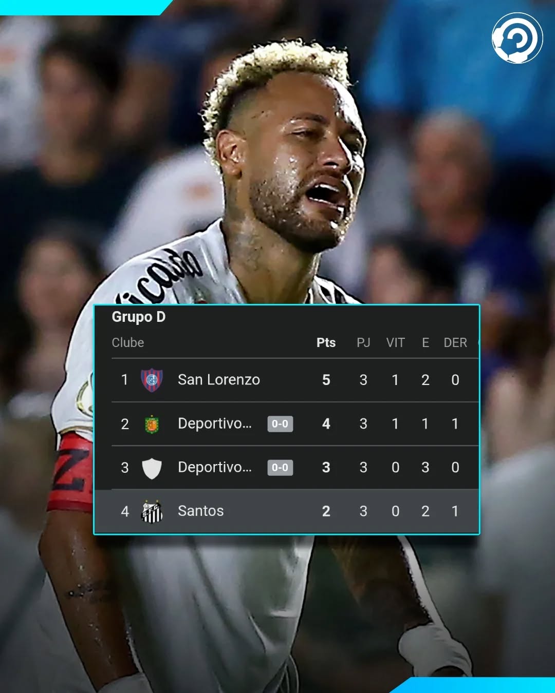 NA LANTERNA! Com o empate diante do San Lorenzo, o Santos ocupa a última colocação do Grupo D da Sul-Americana.