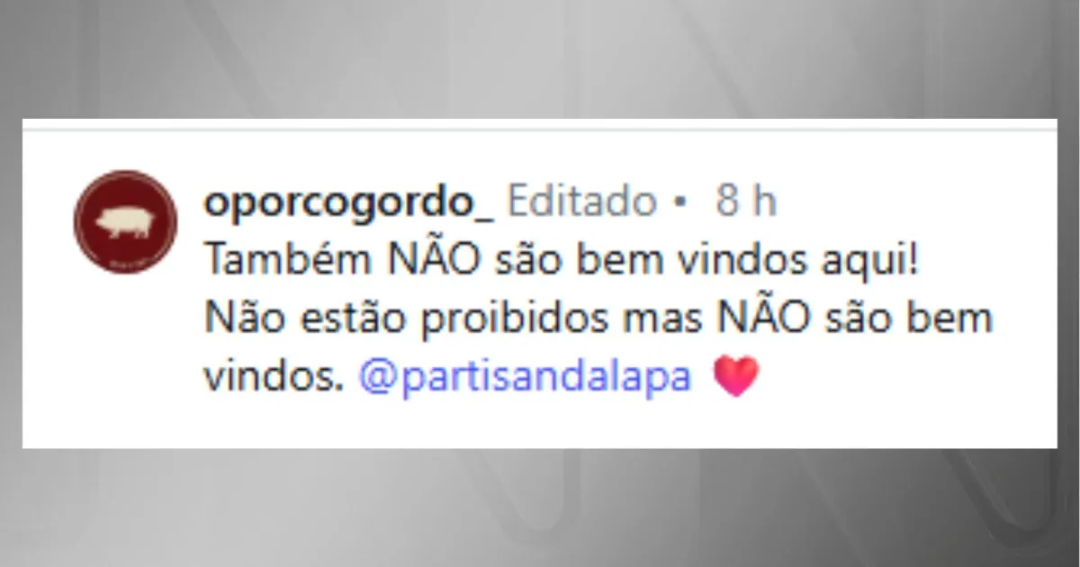 Uma publicação do restaurante O Porco Gordo, do Rio de Janeiro, gerou repercussão nas redes sociais após o estabelecimento compartilhar uma imagem com a bandeira de Israel marcada com um “X” e a mensagem: “não são bem vindos”.