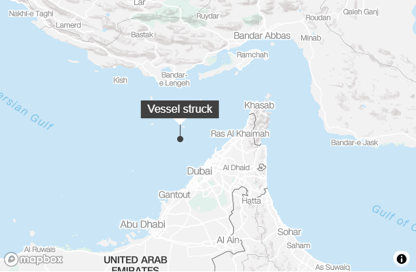 O incidente ocorreu a 35 milhas náuticas ao norte de Jebel Ali, uma importante cidade portuária perto de Dubai, de acordo com a UKMTO, a autoridade marítima responsável pela região.