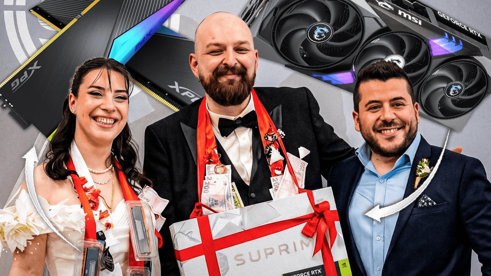 No vídeo, o noivo recebe a placa de vídeo de alto desempenho da Nvidia, as memórias presas ao pescoço com uma fita vermelha, em referência à forma tradicional como presentes são entregues em casamentos turcos. Em seguida, a noiva recebe um conjunto de memórias DDR5 organizado como um colar. Pouco depois, outro convidado adiciona um processador Intel Core Ultra desbloqueado à coleção de presentes.