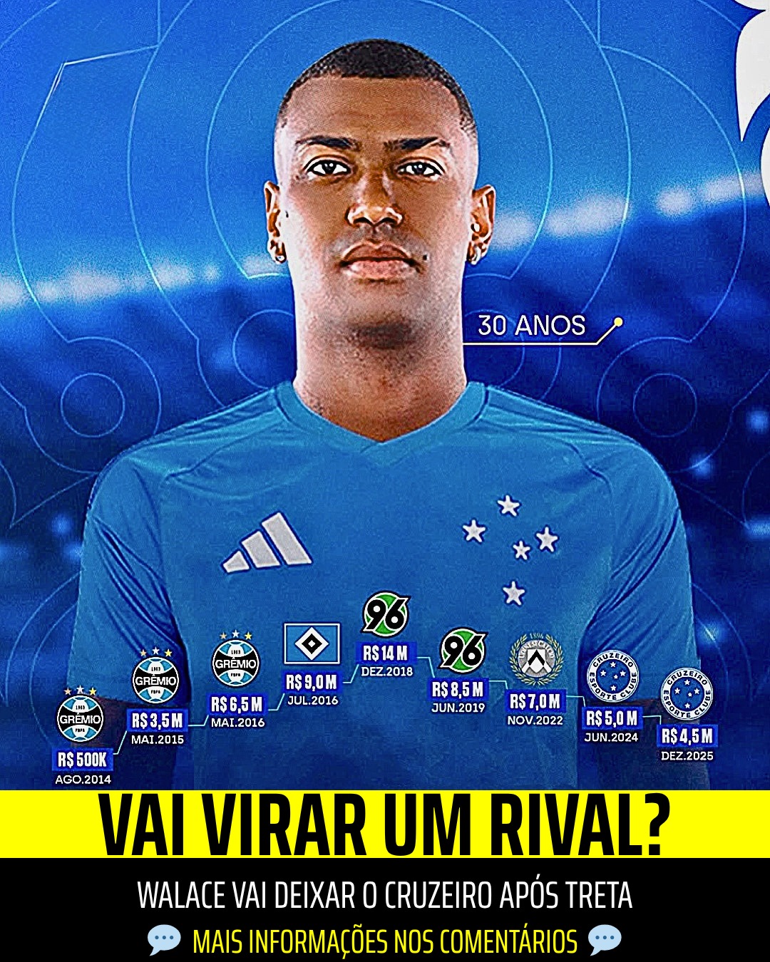 NOVO TIME! Walace vai trocar o Cruzeiro por outro clube brasileiro 💬