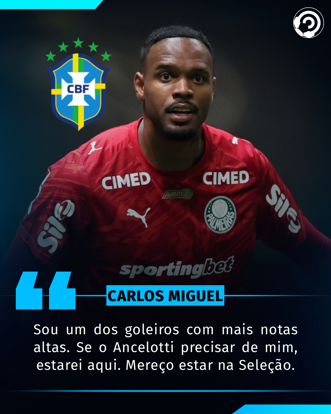 🇧🇷 O goleiro Carlos Miguel afirmou que tem o sonho de defender a Seleção Brasileira e diz estar preparado caso seja convocado por Ancelotti.