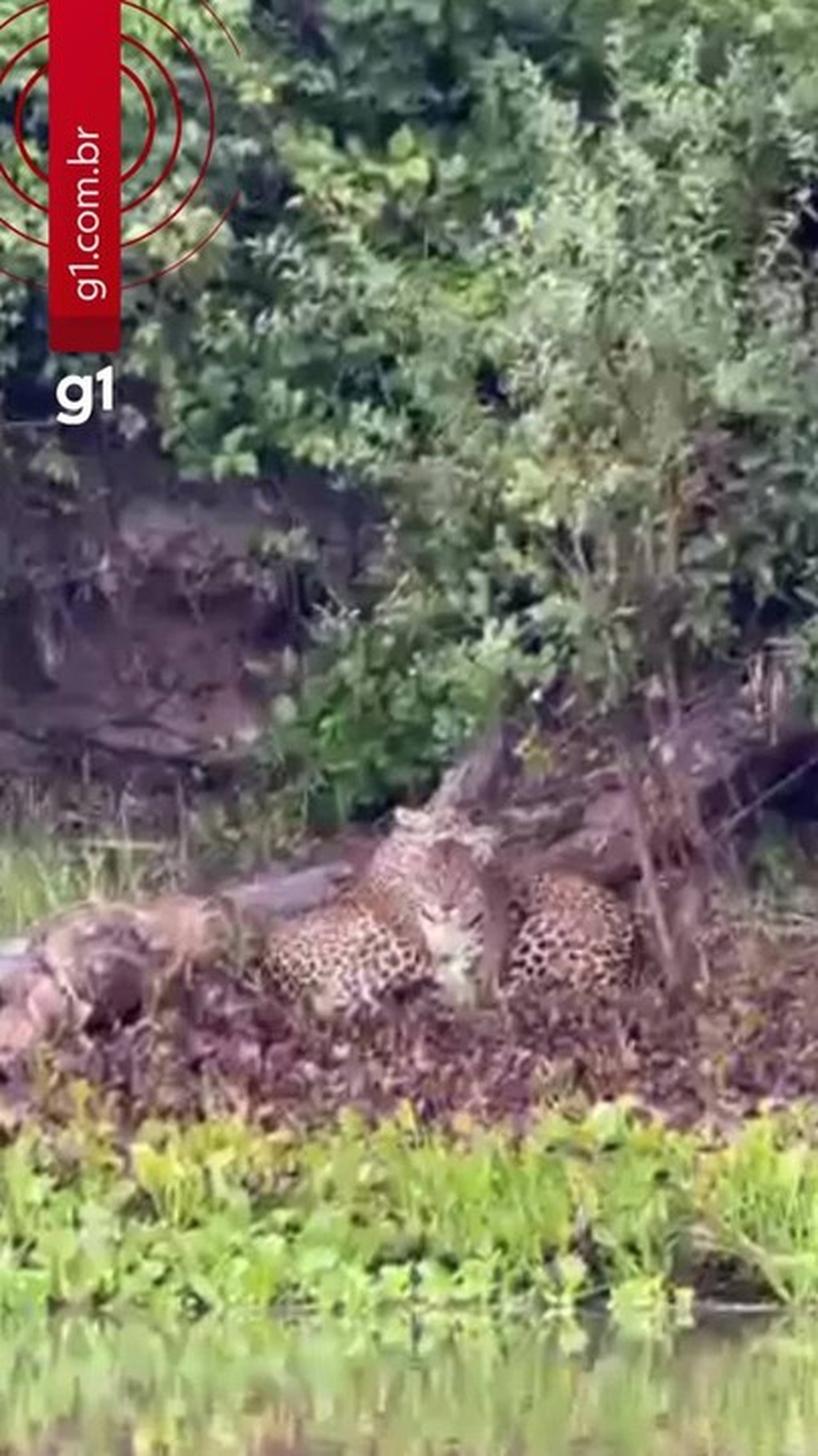 Duas novas onças-pintadas foram flagradas juntas às margens do rio Claro, em Poconé, a 105 km de Cuiabá, no Pantanal mato-grossense. O registro foi feito em março deste ano pelo fotógrafo e biólogo Marcos Ardevino, que descreveu o momento como único.