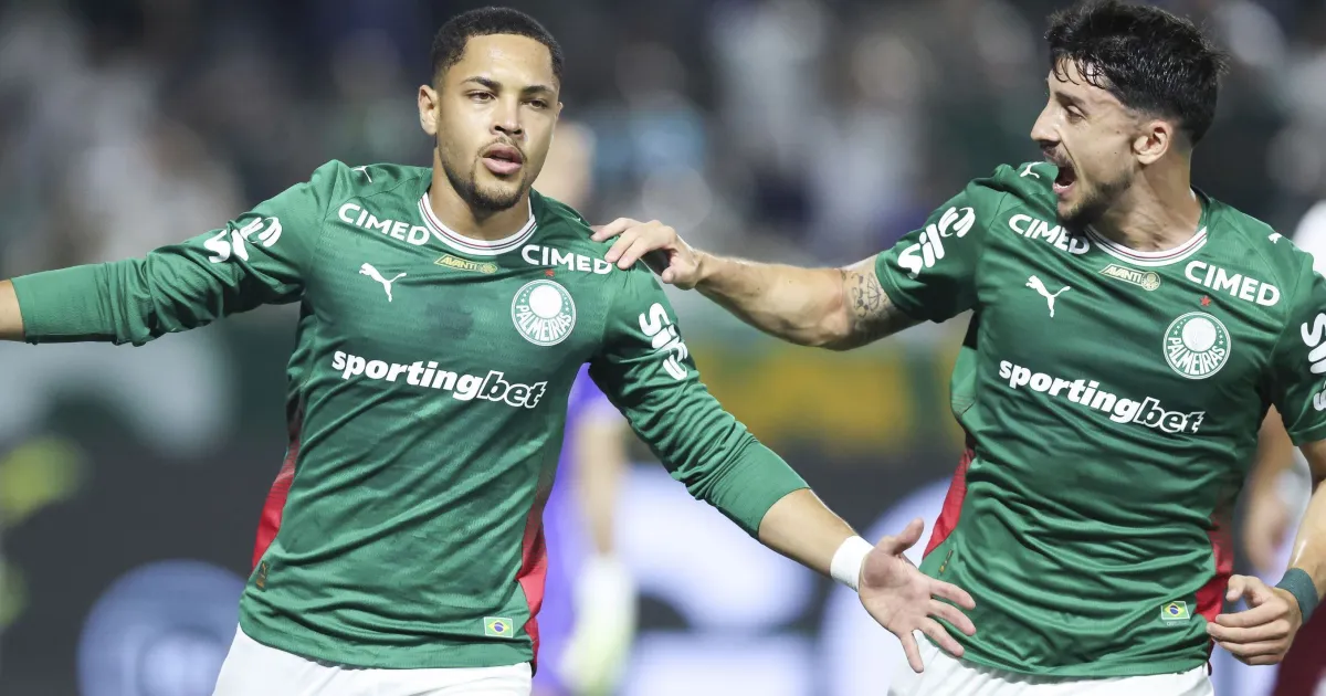 O Palmeiras respondeu em contra-ataques e quase marcou o terceiro aos 22 minutos, quando Vitor Roque avançou em velocidade e acertou o travessão em chute forte da intermediária.