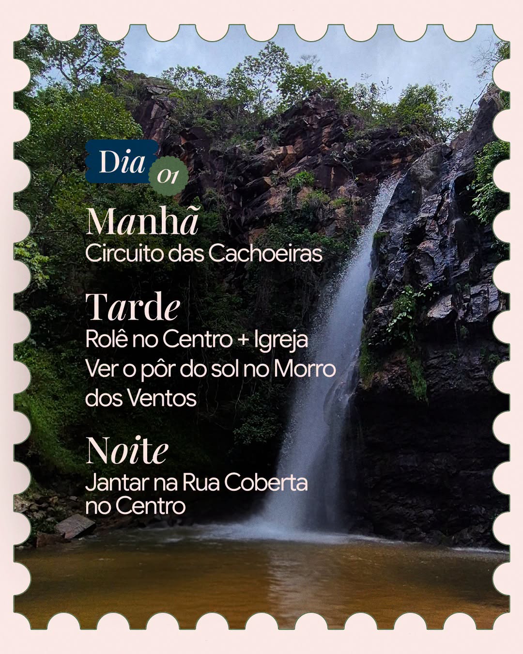 👉🏼 O Dia 01 é focado em trilhas, cachoeiras e o melhor pôr do sol da região.