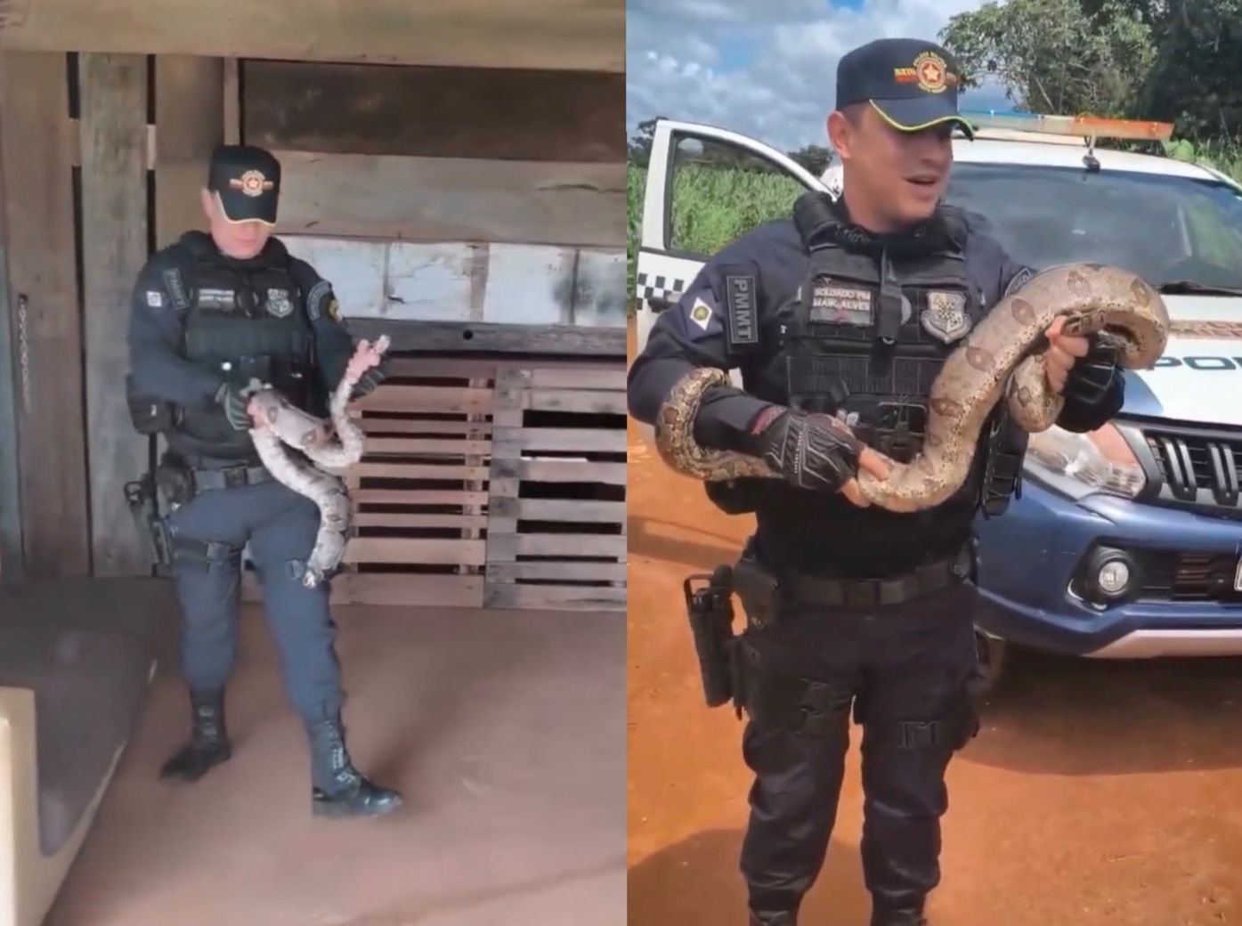 Os policiais capturaram a jiboia sem causar ferimentos e avaliaram o estado de saúde do animal ainda no local. A equipe confirmou que a serpente estava saudável e apta para retorno ao habitat natural.