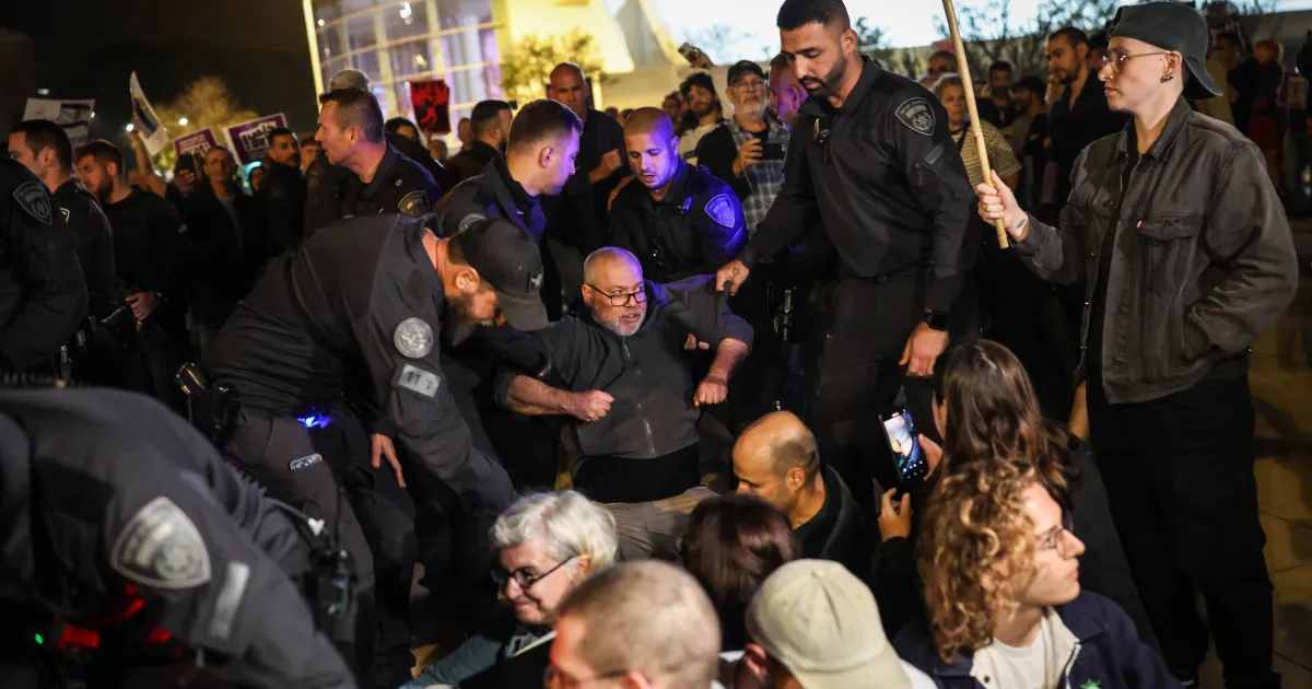 “Conseguimos protestar por cerca de meia hora, e logo a polícia começou a nos retirar à força”, contou Tzur. “Todos com quem eu estava foram empurrados e jogados no chão. Alguém quase desmaiou.”