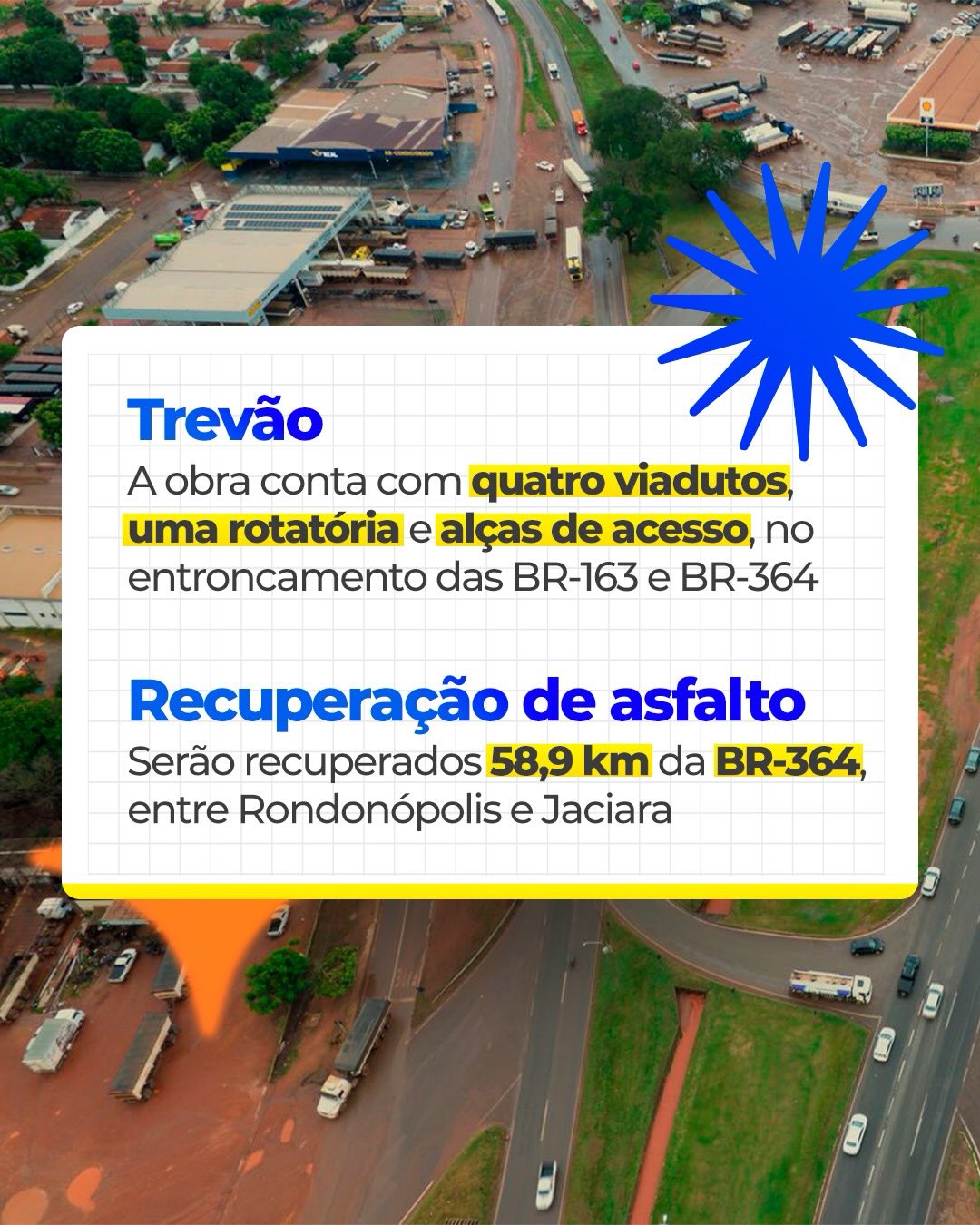 👉🏼 O GovMT e a Nova Rota do Oeste constroem o novo Trevão na BR-163 e também garantem a recuperação de 58,9 km de asfalto na BR-364, entre Rondonópolis e Jaciara.