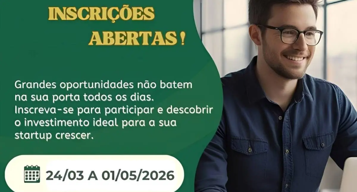 As inscrições devem ser realizadas até o dia 1º de maio de 2026, por meio do portal oficial do Sebrae Startups, onde também estão disponíveis todas as informações sobre o processo seletivo e as etapas do programa.